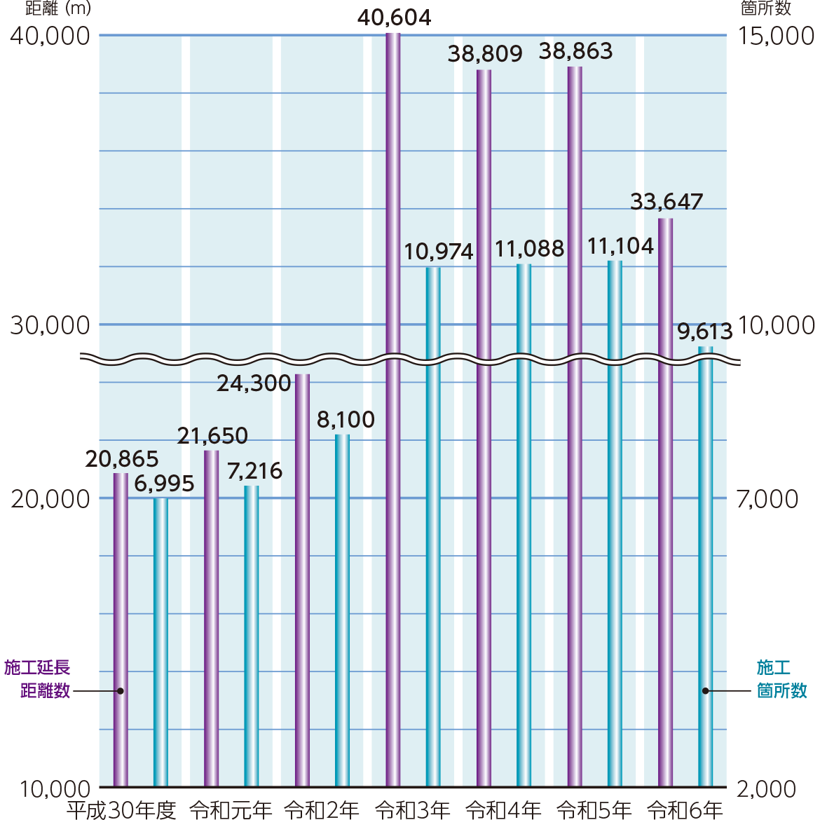 | 施工年度 | 箇所数 | 施工延長距離(m) |